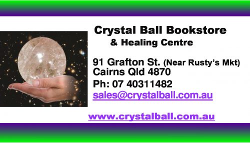 Crystal Ball Bookstore About Open 7 days per week Business Website Address http://www.crystalball.com.au Business Phone Number 4031 1482 Email sales@crystalball.com.au Business Tags books, healingcentre, spiritualbookstore Business Address 91 Grafton St, Cairns Postcode 4870 Business Category Books