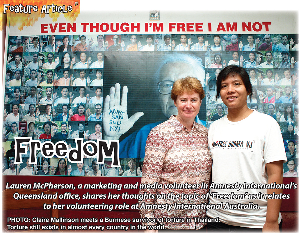 Amnesty-TownsvilleWe in Australia face several issues that impinge on individuals’ right to freedom, such as the health and education gap affecting Aboriginal and Torres Strait Islander Peoples,  discrimination against the LGBTIQ community, and widespread violence against women.