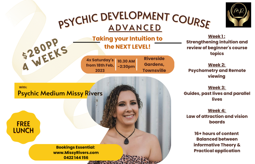Join Internationally renowned Psychic Medium Missy  Rivers for her Advanced Psychic Development Course and take your Intuition to the NEXT LEVEL!
