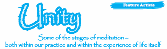 On from here, and after we have established this foundation firmly, we can begin to be aware that the forms are not separate from the formless space in which they appear; the sounds are not separate from the silence they emerge from; the movement, e.g. of the breath, is not separate from the ever-present stillness. We can embrace the experience of both dimensions simultaneously. After some time practising with this awareness, we can finally recognise that we as witness awareness are also not separate from that which we are aware of. The inner and outer, the form and the formless, the silence and the sounds, the stillness and the movement of life and we as the witness awareness, are one. The seeming diversity of awareness, container and contents become the absolute unity for which there are no further words.