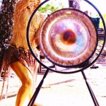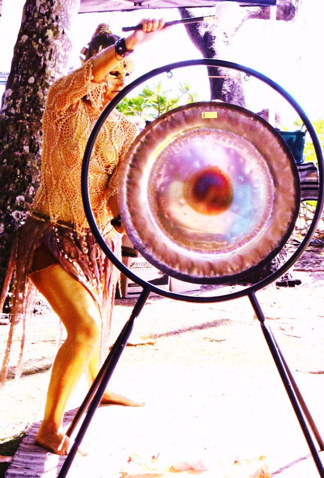 The most recent example was when I received the new Moon Gong. As I played it I saw myself all painted in gold and was inspired to bring movements of Tai Chi, Karate and Taiko together when playing it. An opportunity to play the Gong arose and I started to practise these moves and gather costume pieces. As the day approached I started to feel scared … scared that I wasn’t good enough. My mind presented to me an easy way out … ‘you don’t have to play the Gong that way, in that costume, you could just sit behind it quietly’. But I knew those thoughts came from fear and I would not let them win.
